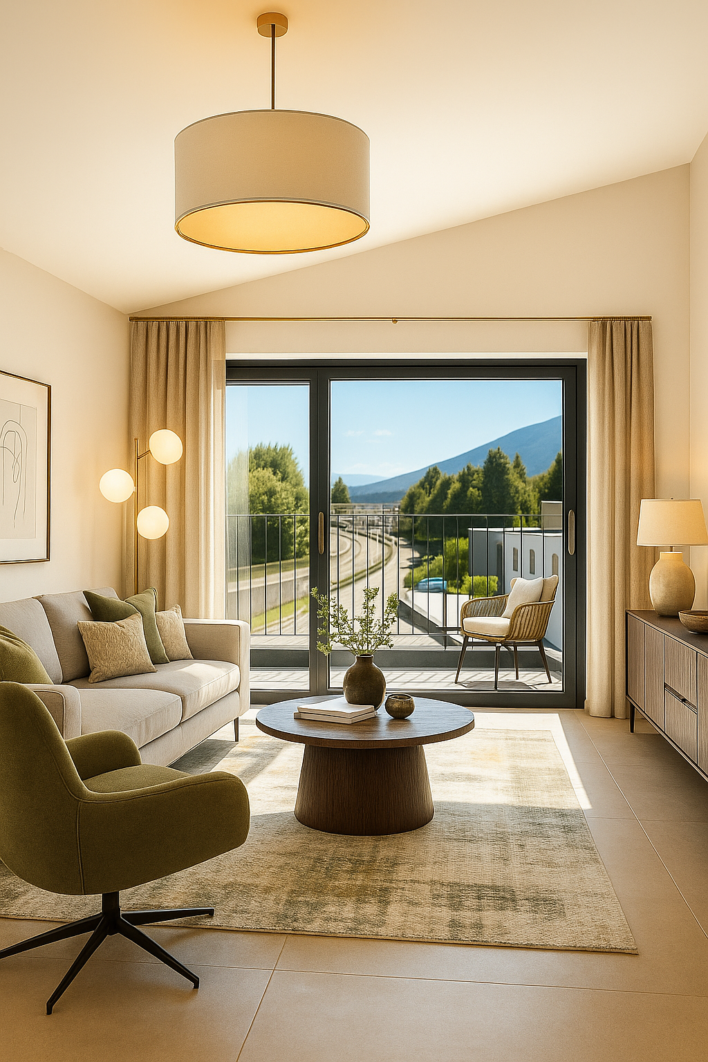 Living room / kitchen: Large-format tiles